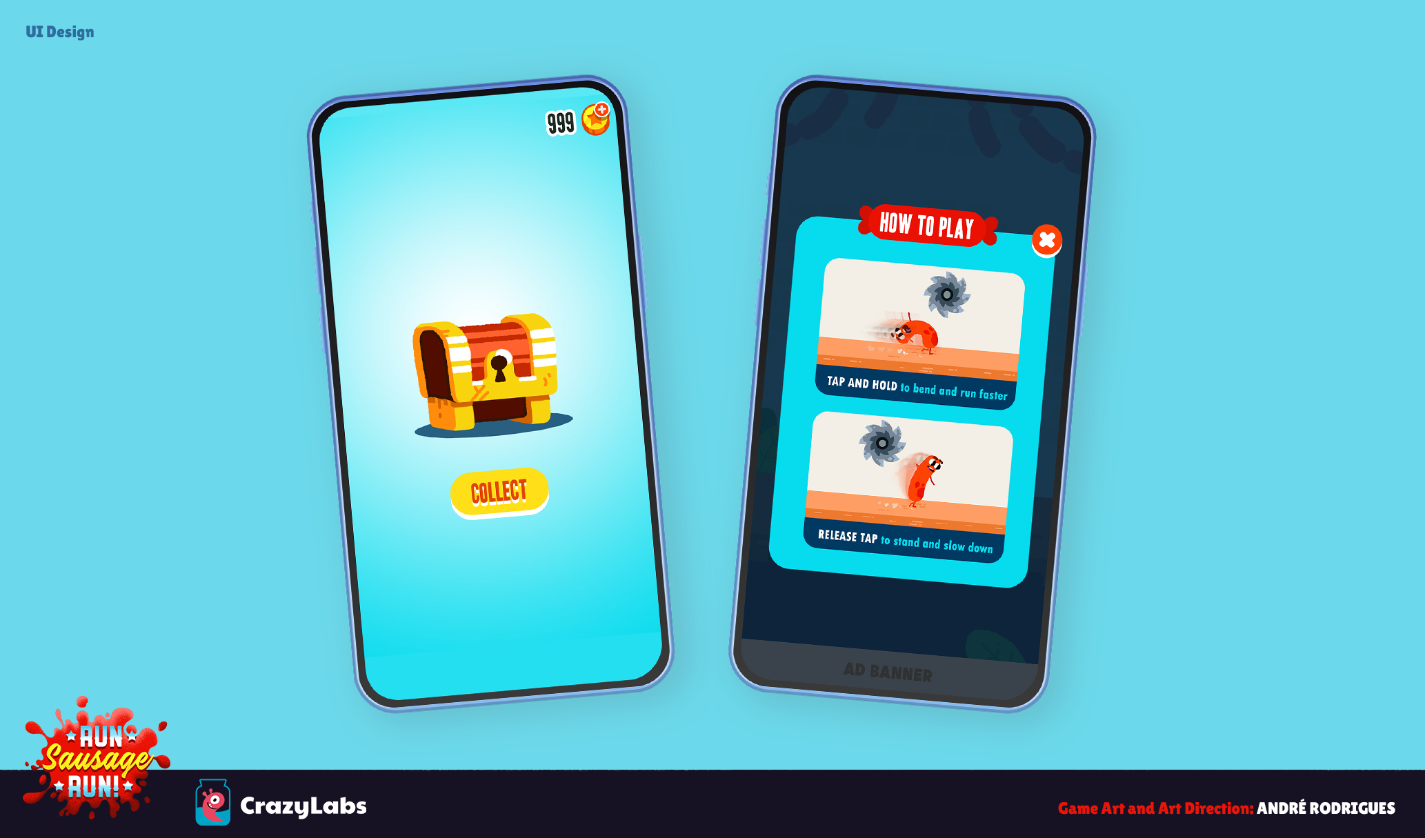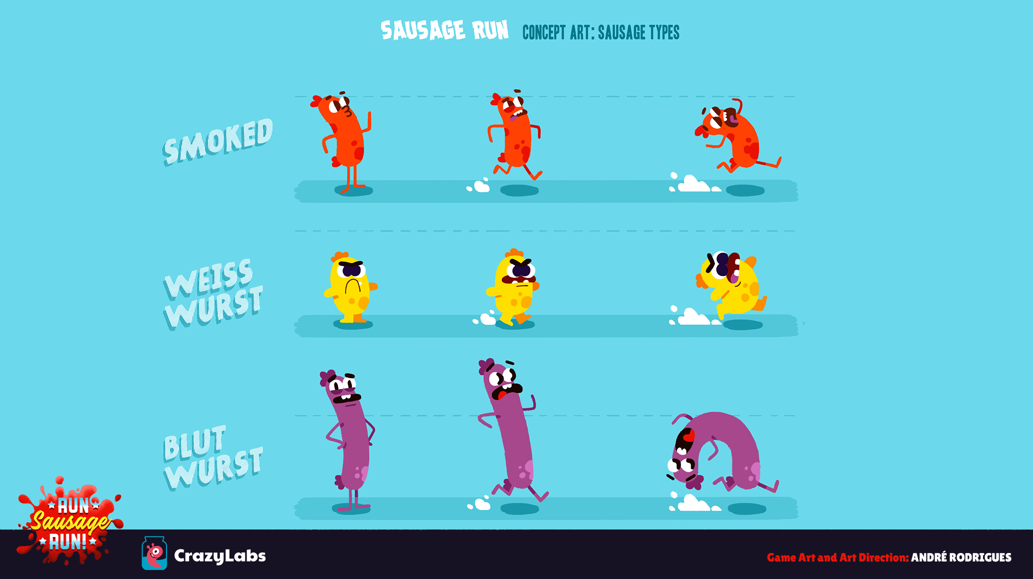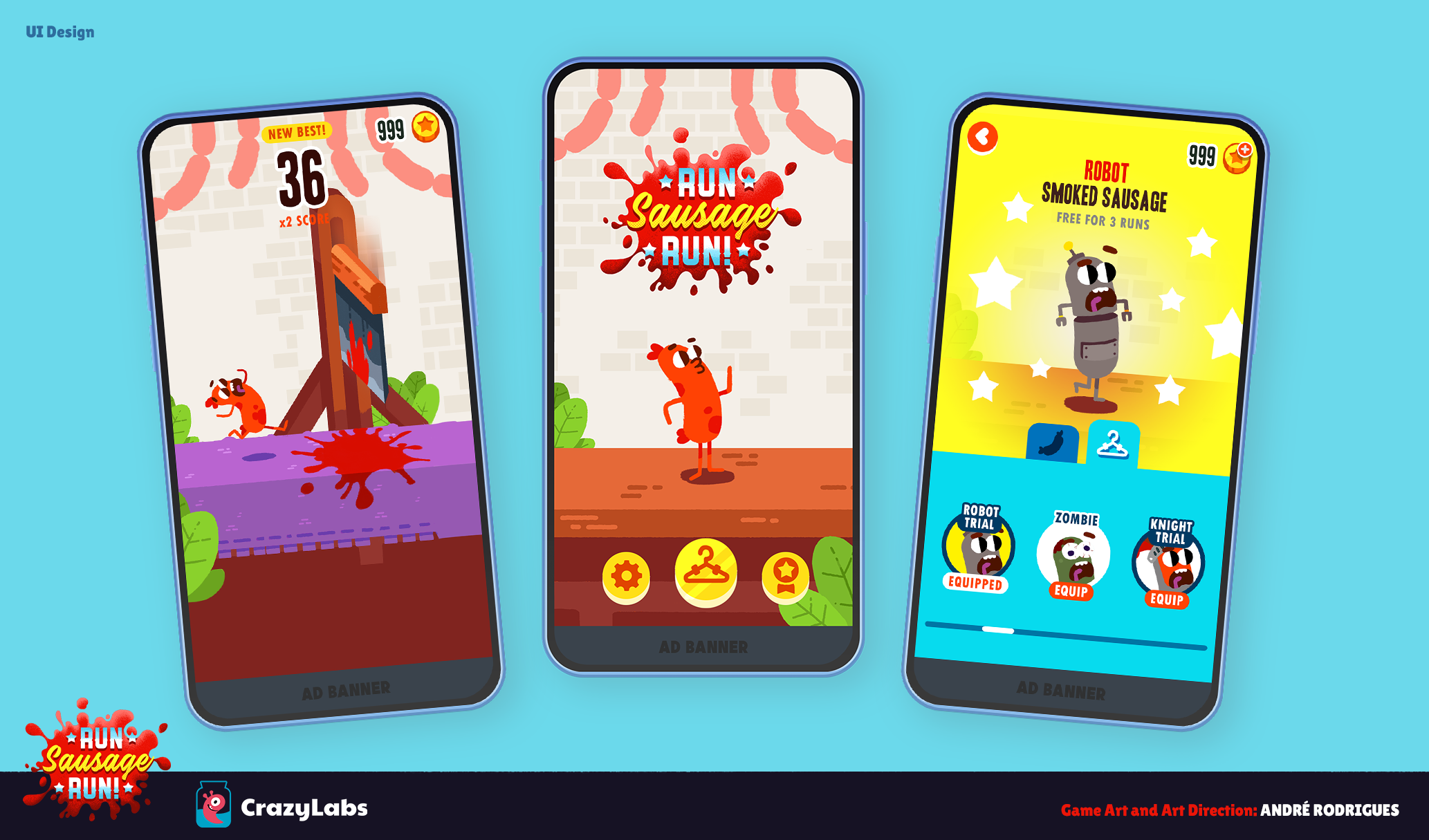 I was responsible for creating the visual style of this IP from scratch, coming up with the characters, colors, UI, and other visual elements that make up the Sausage brand as a whole.